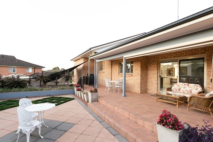 Add green grass, trees, and small objects like lamp, chair or table...
